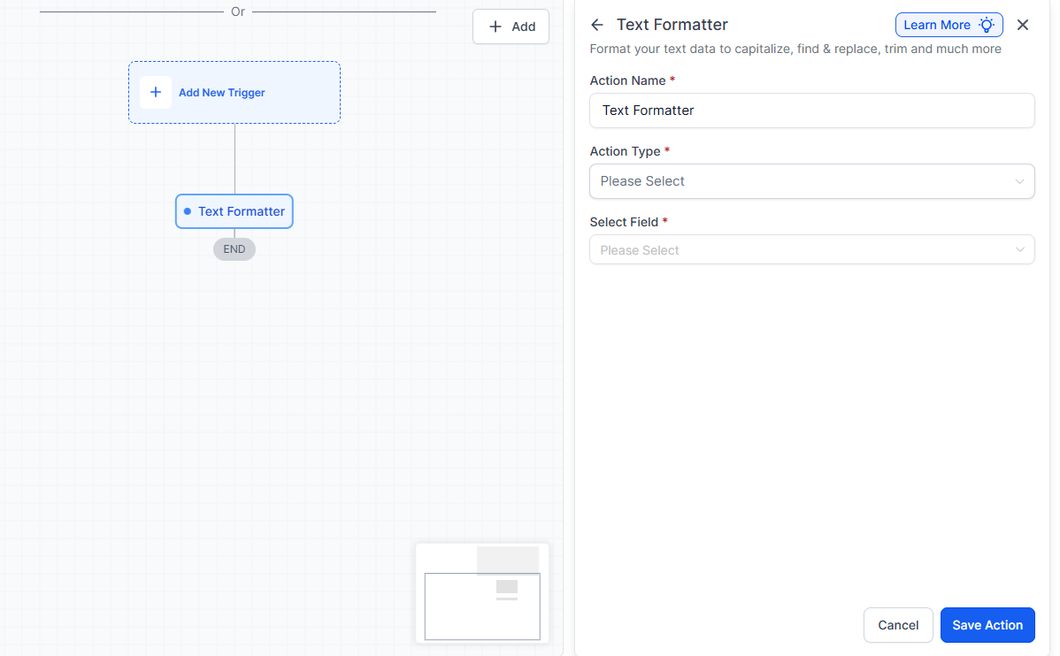 3. Select the Text Formatter action and choose from the list of available formatting options.