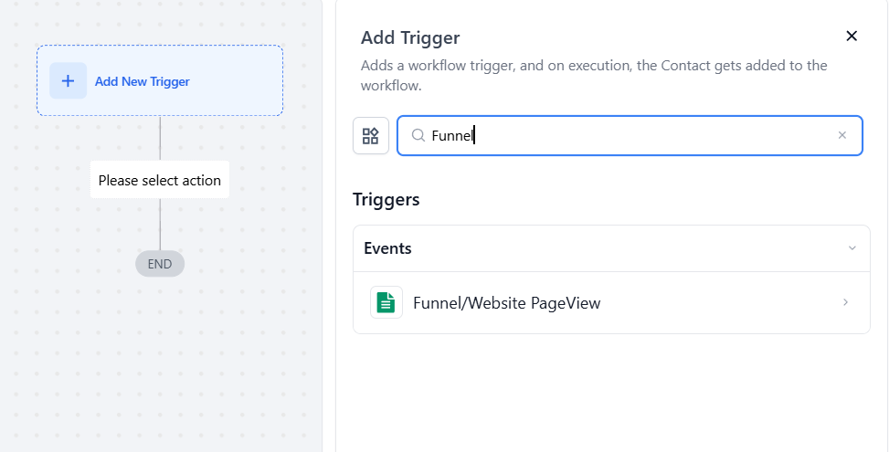 - Search for the " Funnel/Website PageView" trigger under the events category.