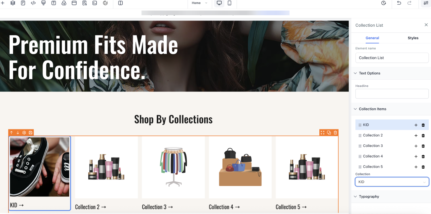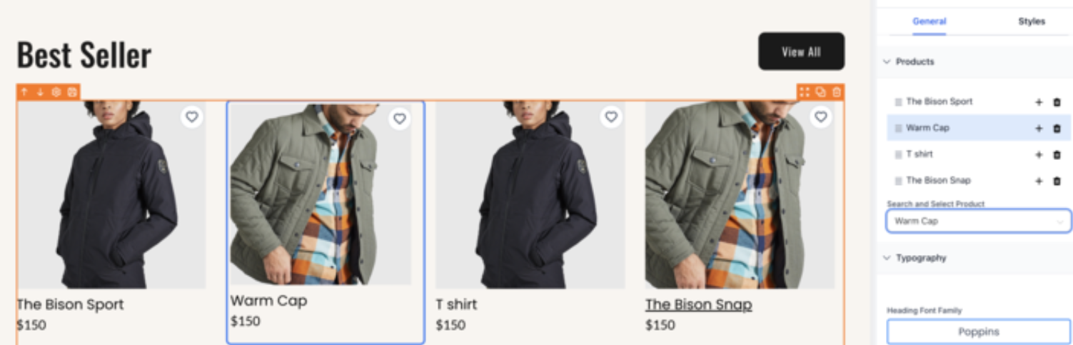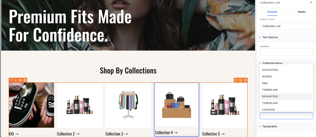 Micro-Interaction interacts with Product and Collection elements in the builder, allowing for faster and more intuitive selection and configuration directly on the canvas.