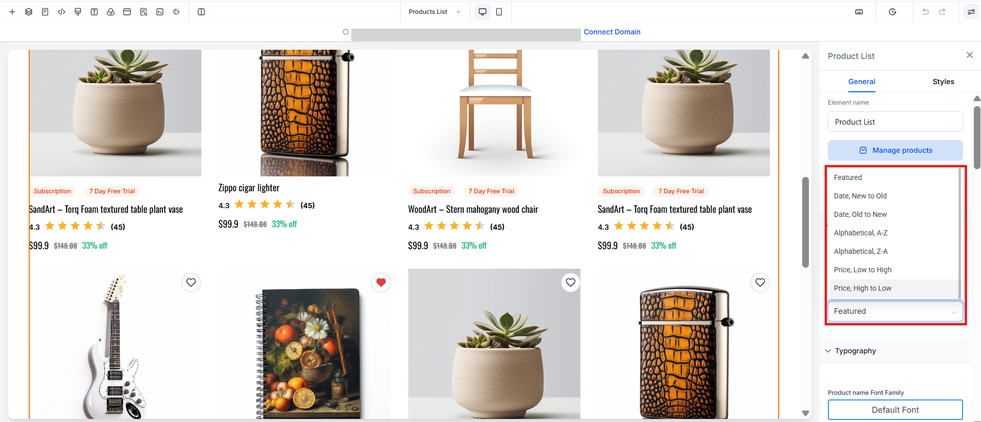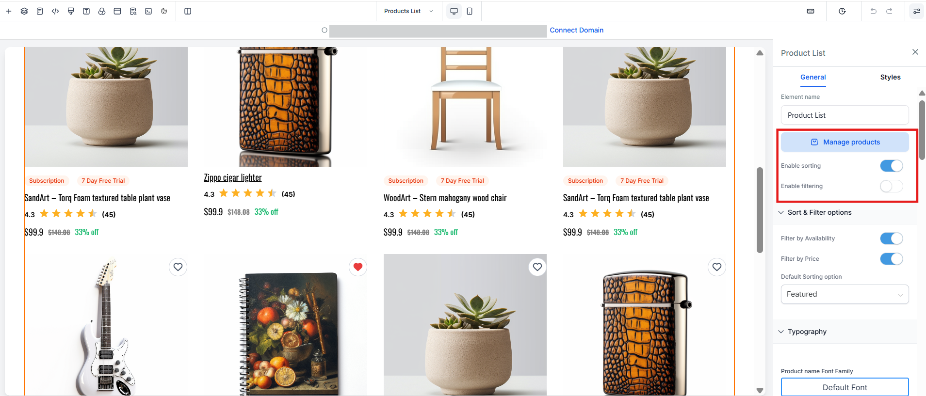 The option to sort and filter products within the product list element streamlines how customers interact with your online store. Here’s a step-by-step guide on how to enable these features: