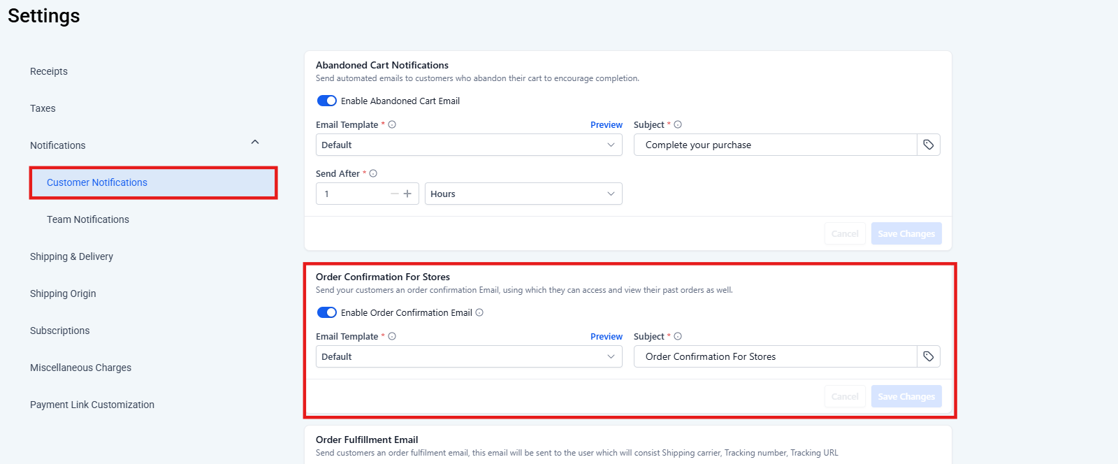 - Go to: Marketing & Sales > Payments > Settings > Notifications > Order Confirmation Email for Stores