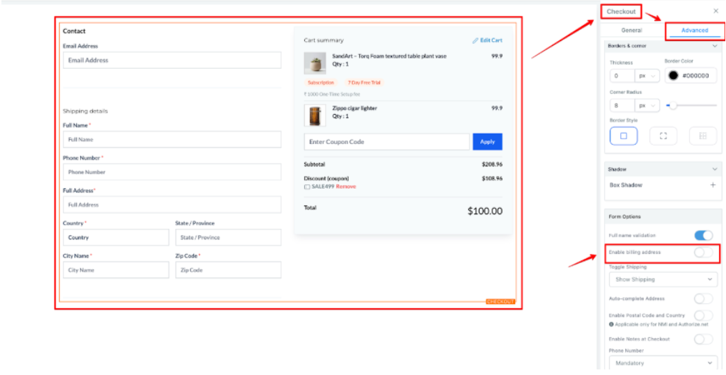 5- Save and Publish: Save your changes, and your checkout page will now capture billing address details.
