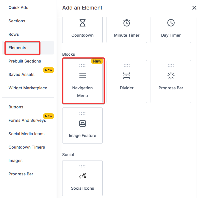 - Type "search" in the search bar and drag and drop the search element to your desired location.
