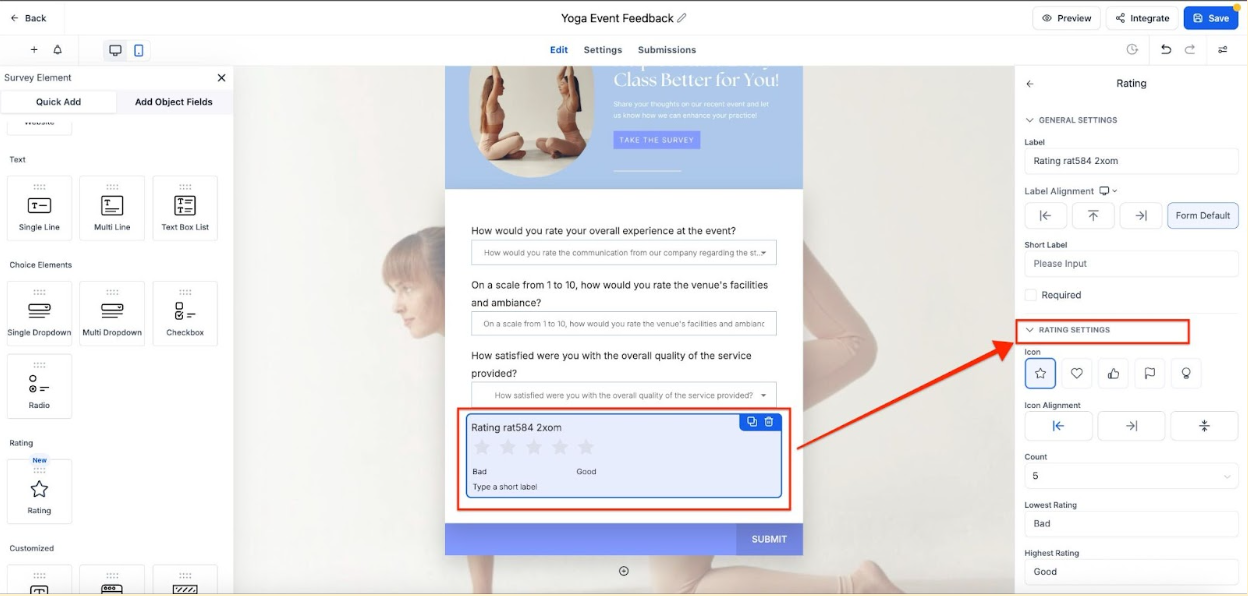 1. Can I use the Rating Element in all types of Forms, Surveys, and Quizzes?