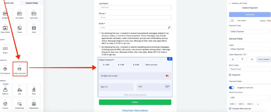 You can now collect payments and donations through a form. These forms allow you to add a payment element, enabling you to collect either a specific donation amount or the client's desired donation amount.