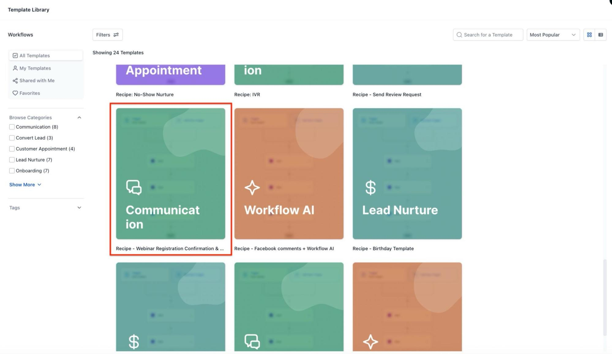In the webinar setup, click on the three dots in the title and choose Edit Workflow to use a pre-built automation recipe.