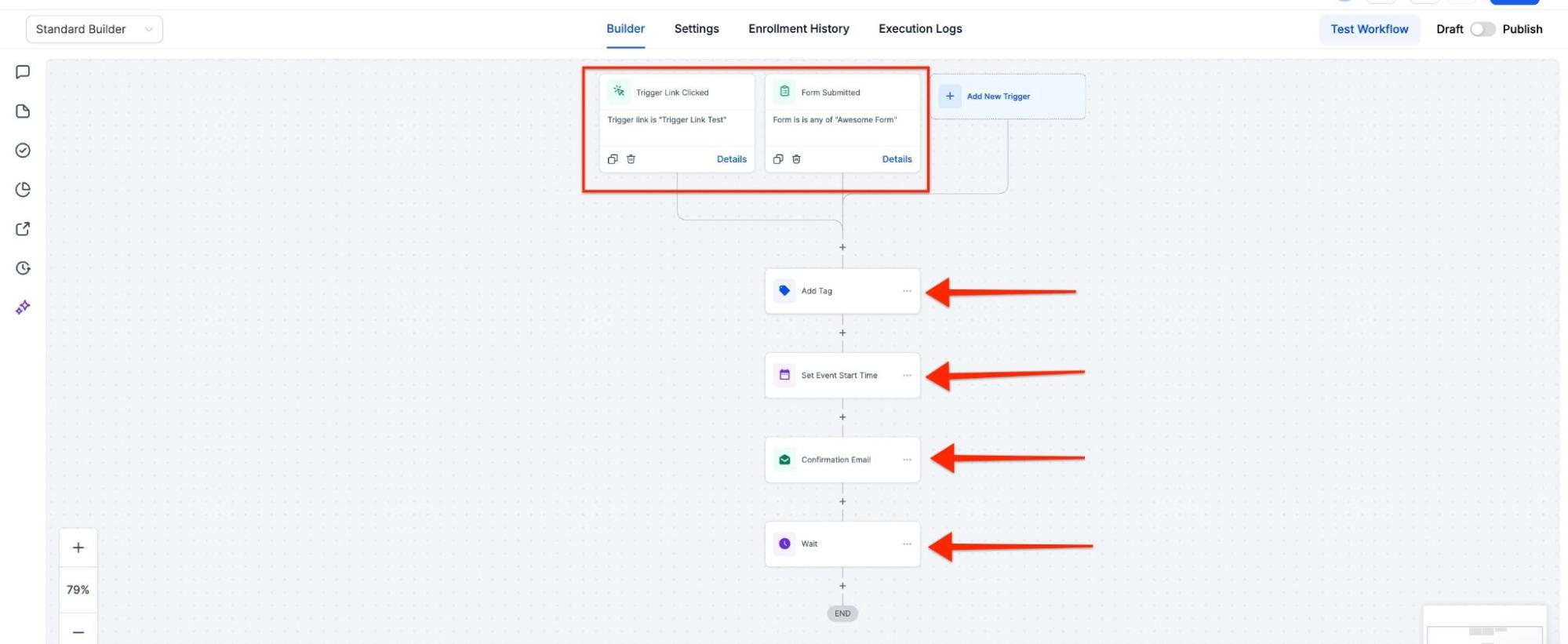 Use automated workflows to schedule email or SMS reminders, confirmations, and post-webinar follow-ups. These workflows keep your attendees informed and engaged throughout the process.