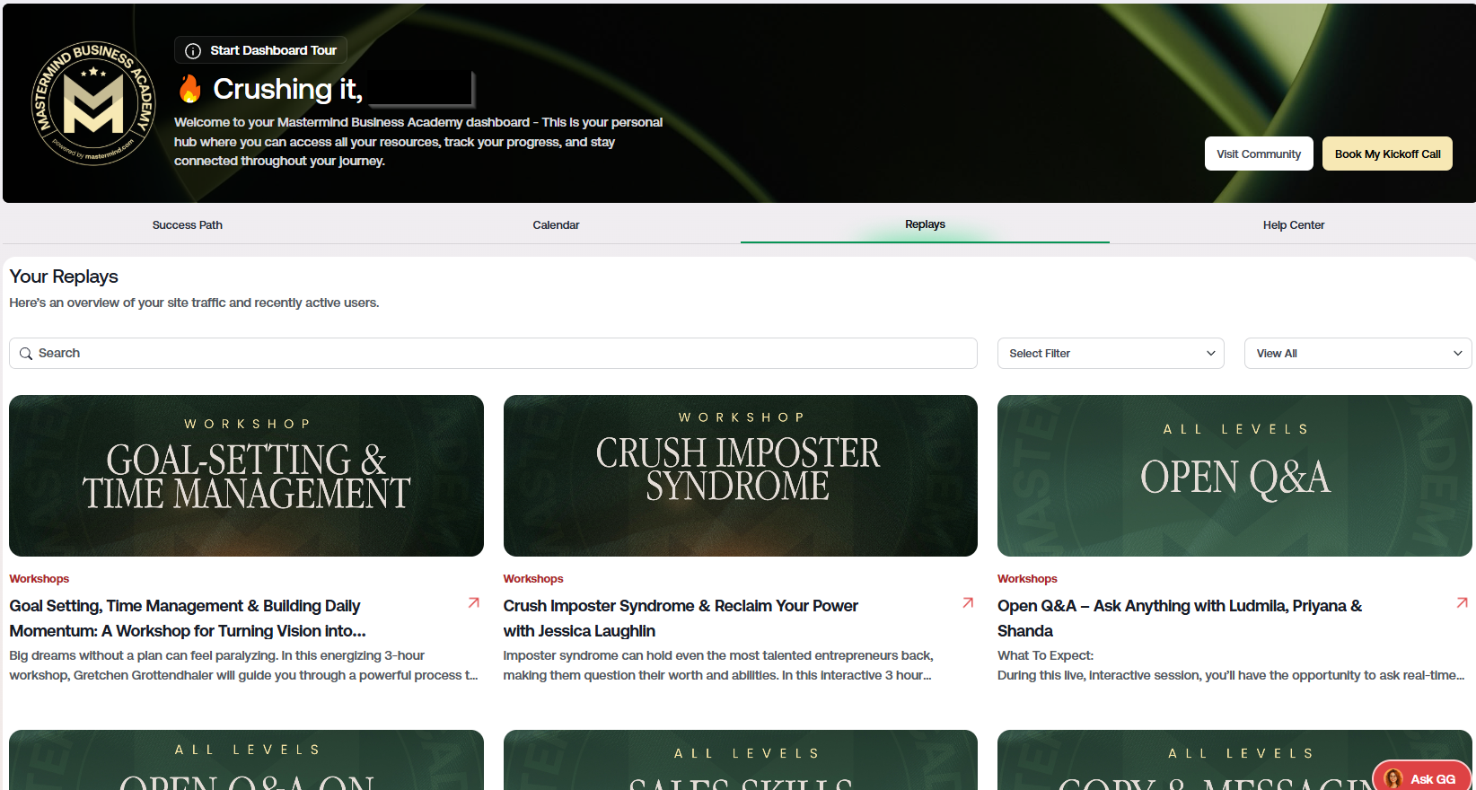 Our Training Replays were previously available in the MBA Community, but they’ve now been moved to your Business Academy Dashboard for easier access.