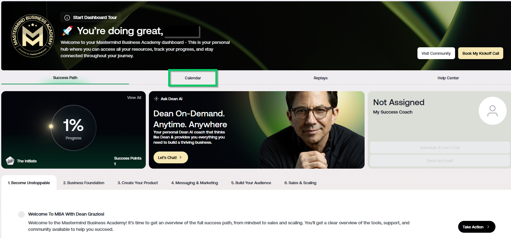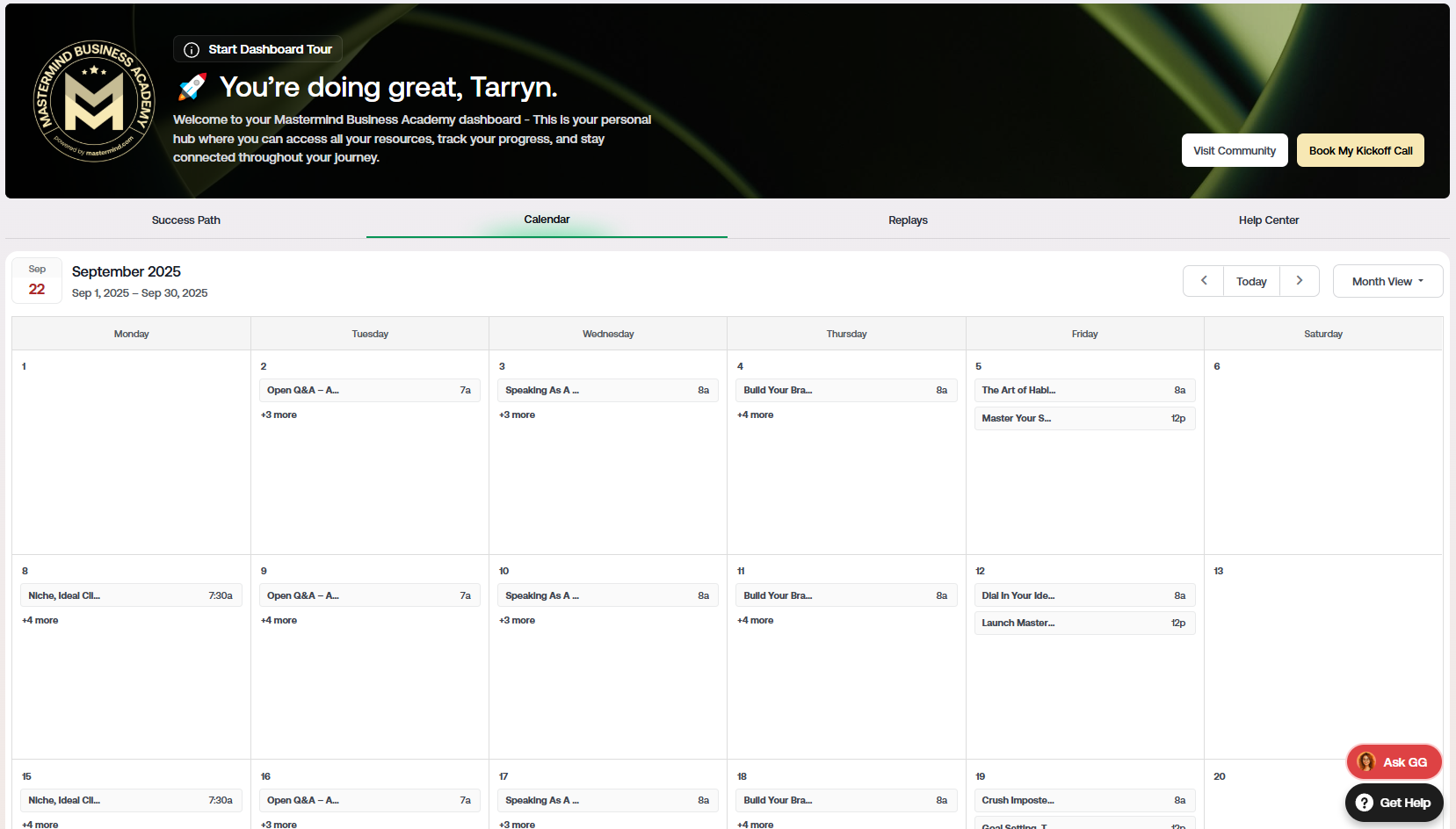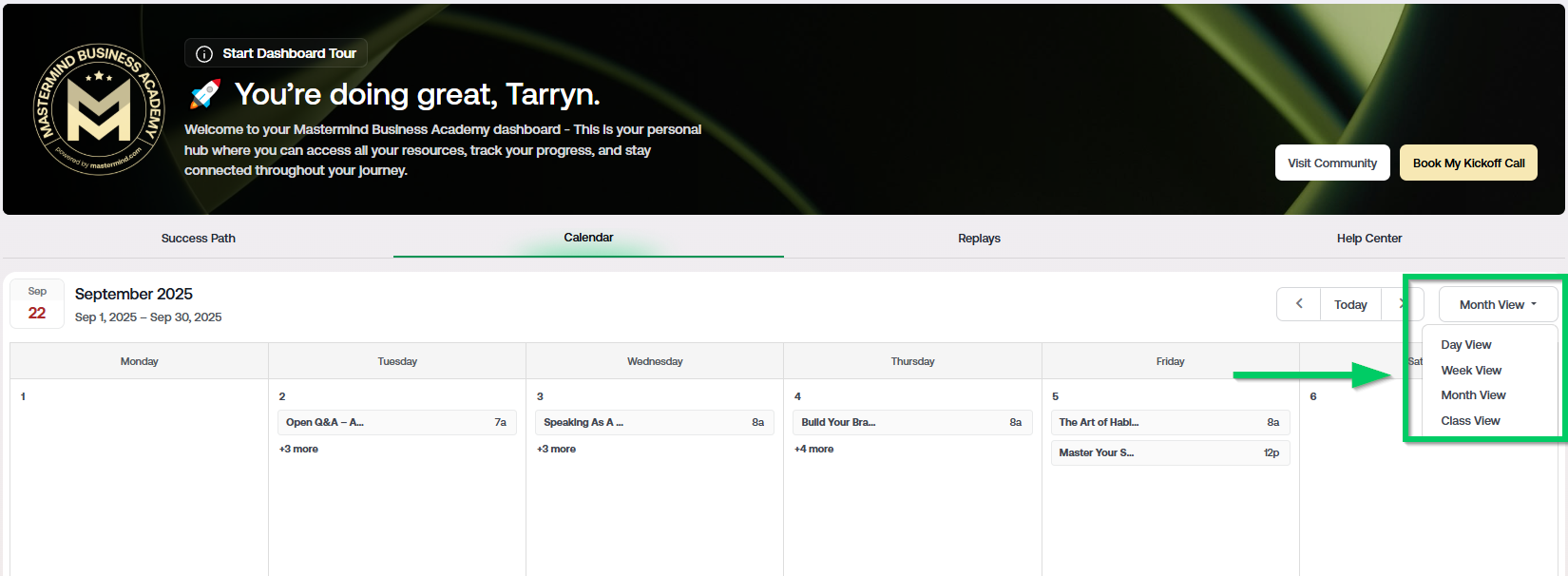 Navigating the Calendar section within your Business Academy tab on your Mastermind account is a breeze!