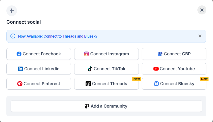 1. Go to Marketing & Sales > > Email & Social Media > Social Planner and click “Add Socials.”