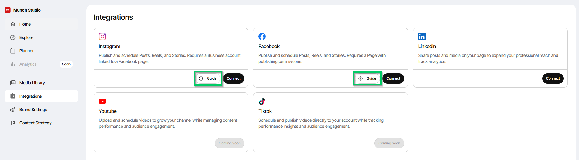 For more in-depth, step-by-step instructions, check out the Guide sections within the Co-Pilot tool's Integrations tab for both Instagram and Facebook: