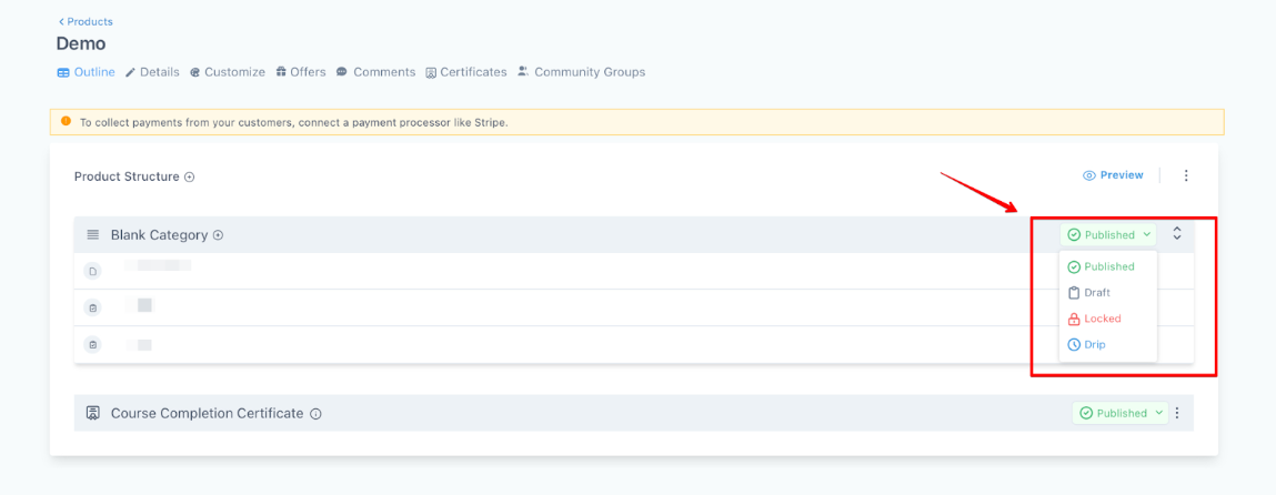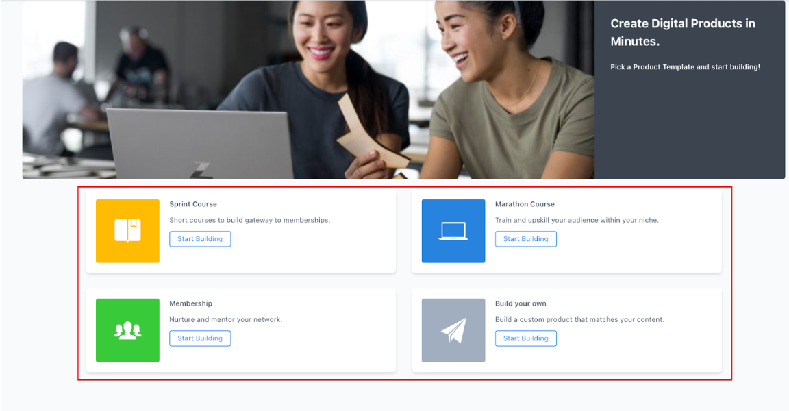 - Navigate to Products within the course tab and click Create Product to start a new course.