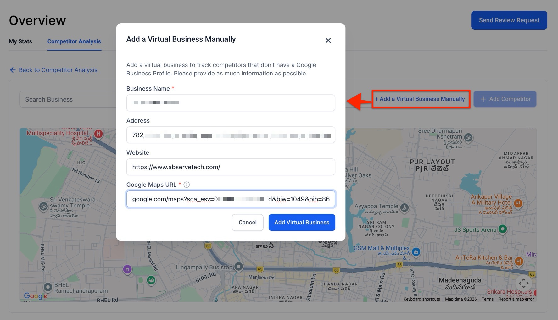 - Virtual Business Support: You can manually add virtual businesses or service-area providers using their website URLs, service regions, or virtual addresses.