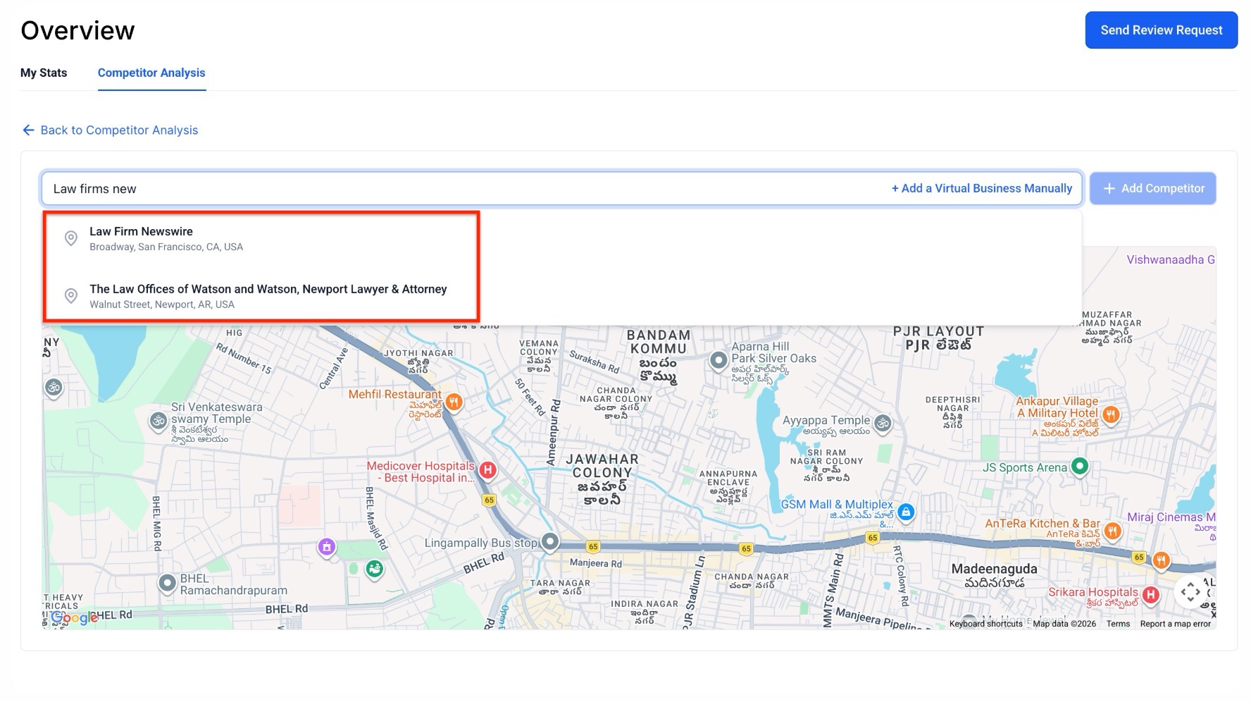- Streamlined Onboarding: Adding competitors is quite fast with an intuitive search flow. As you type a business name, the system provides instant suggestions to auto-populate details.