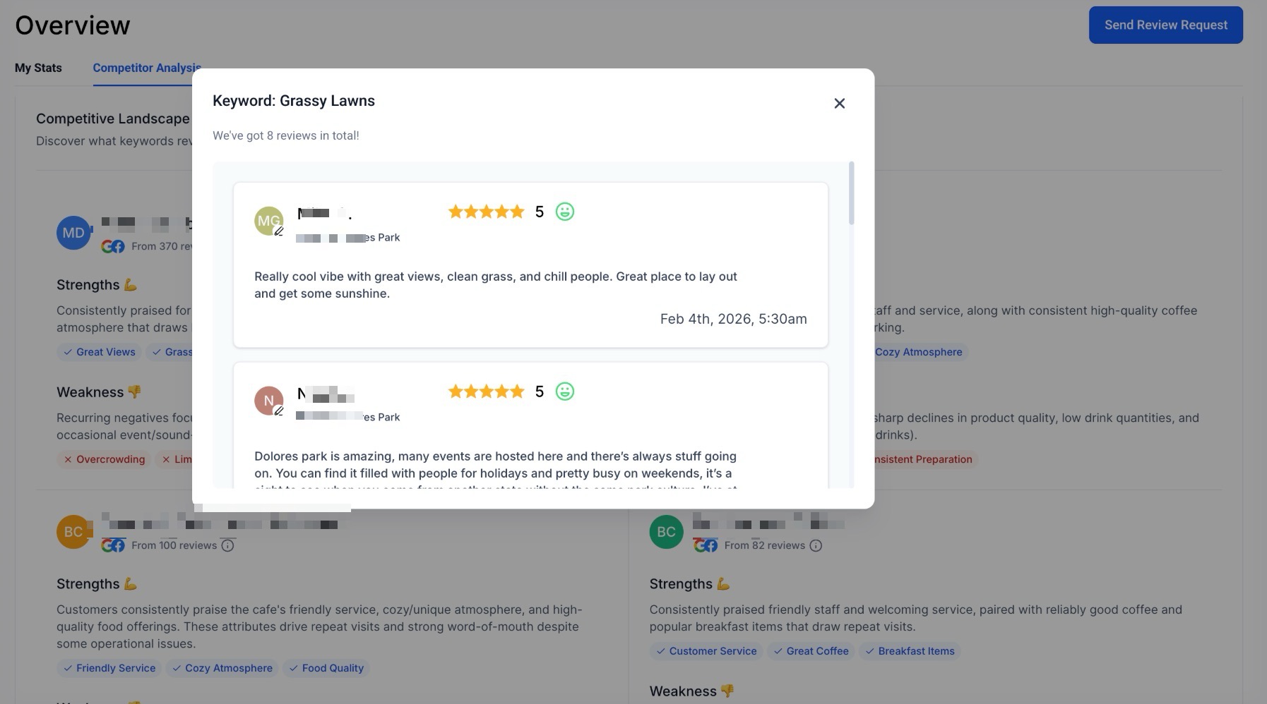 This lets you compare your business’s reputation with up to three competitors across multiple review platforms. You get insights like star ratings, review counts, and response times to see where you stand and spot areas to improve. Just pick your competitors and generate the report.