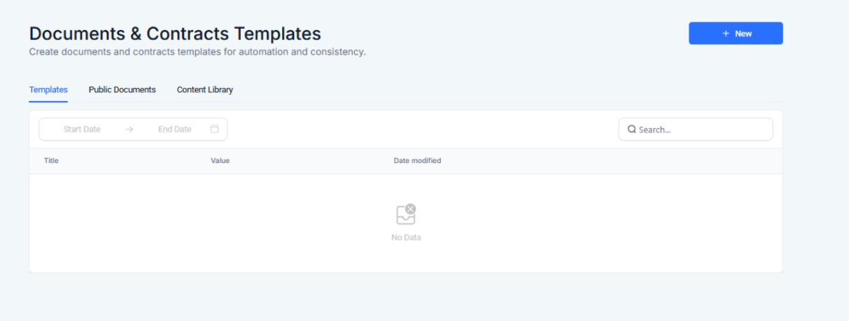 - Navigate to Marketing & Sales → Payments → Documents & Contracts → Templates