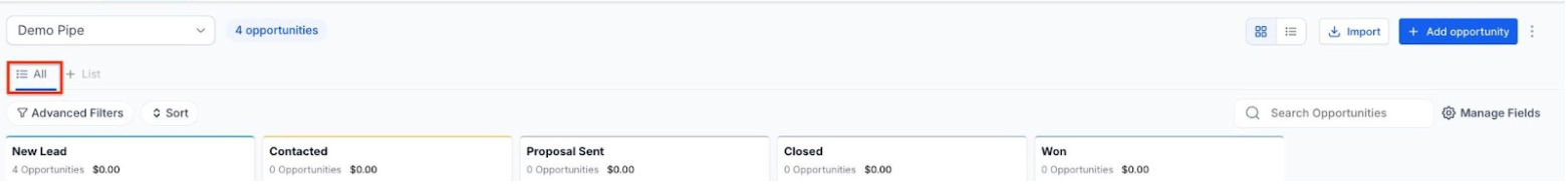 To begin, navigate to the Marketing & Sales > Sales Pipelines > Opportunities This is where you'll find all your business opportunities listed, including potential sales, leads, and other crucial data.