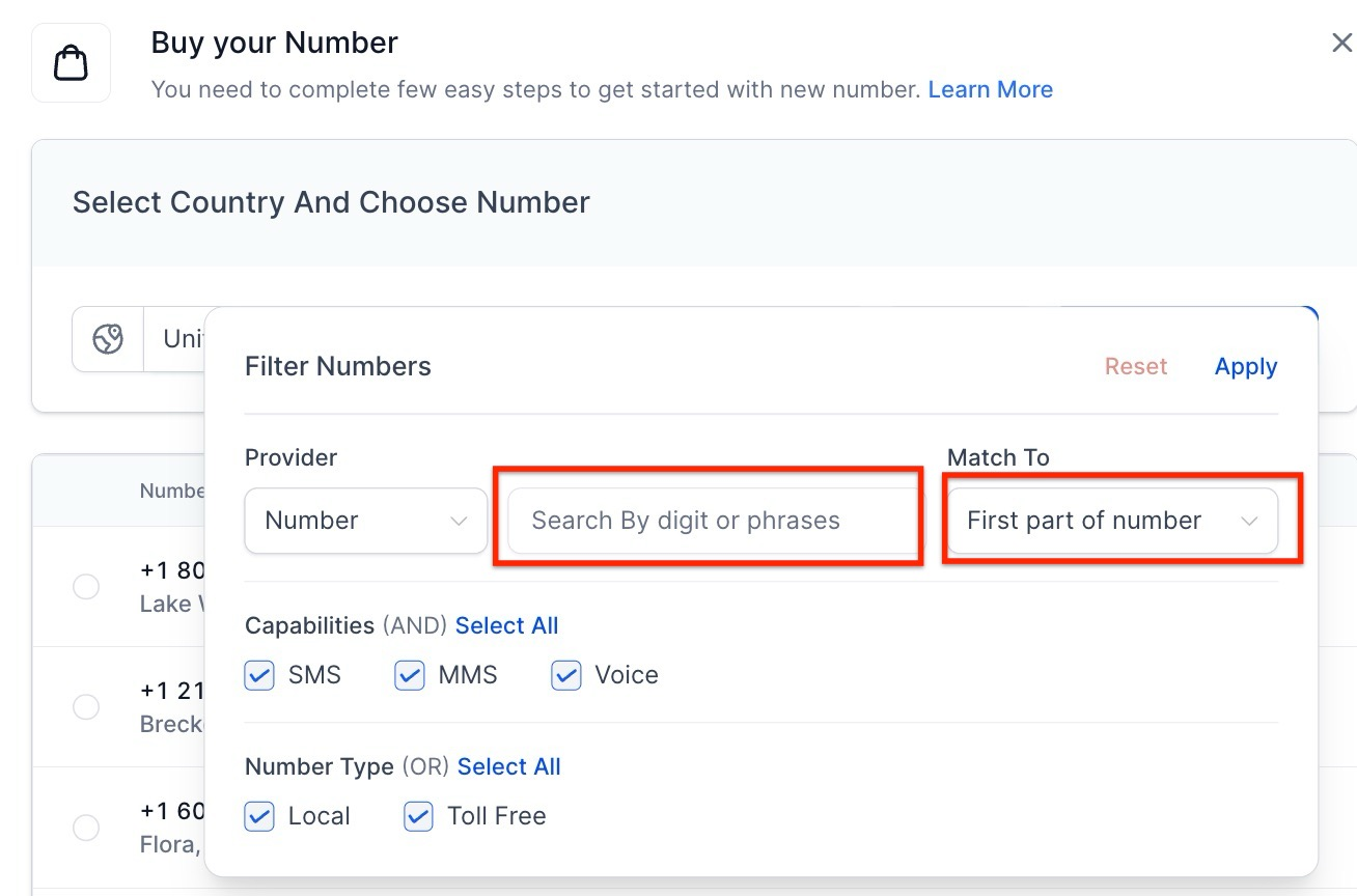 Answer: If your preferred area code doesn’t have any available numbers, you’ll need to choose a different area code when searching for a new number.