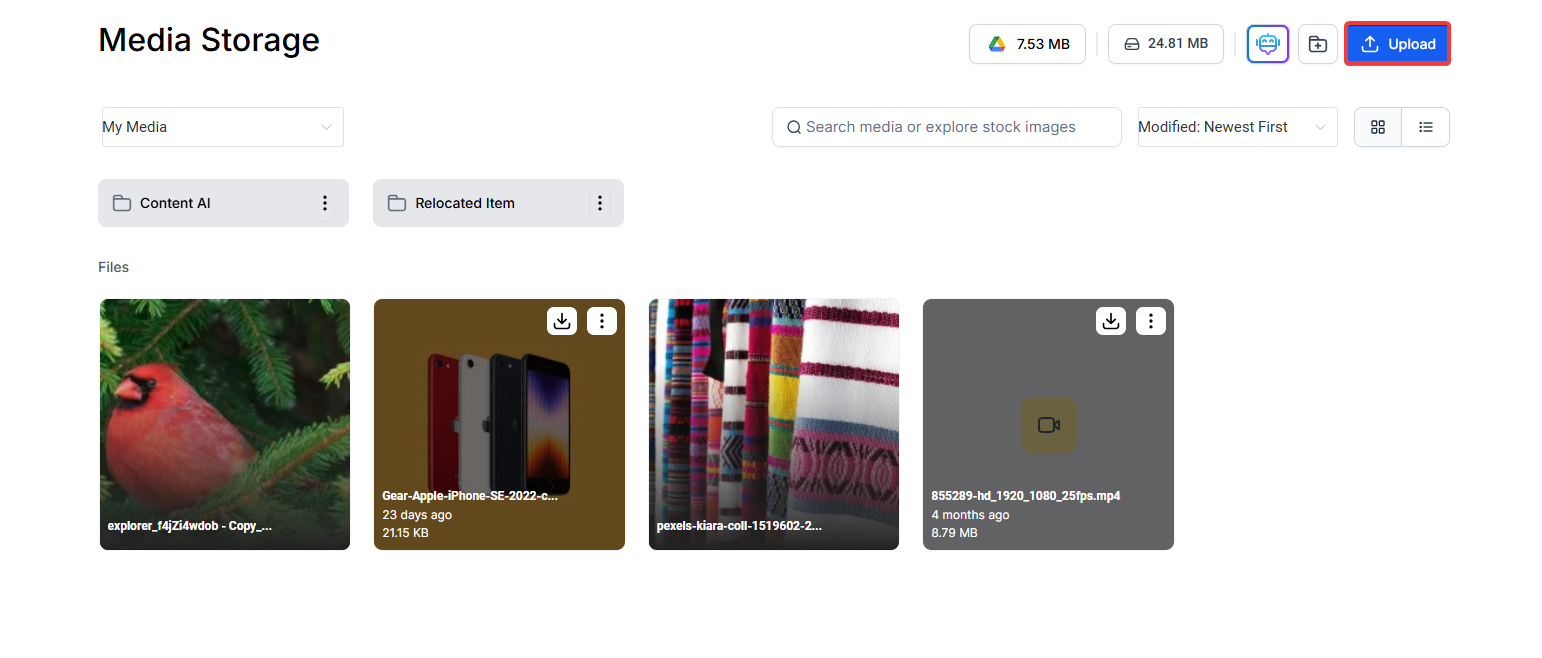 - Go to your media tab where images for your funnel or website are stored.