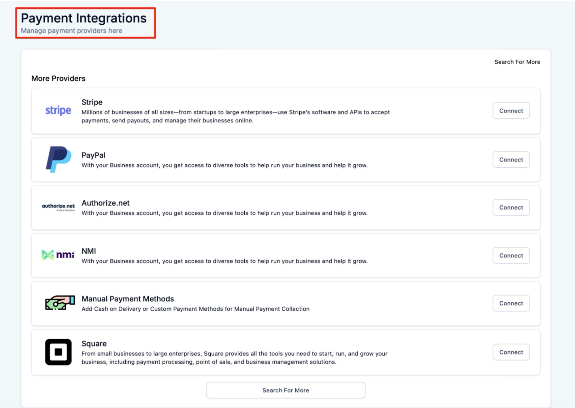 Step 1: Ensure your Stripe, Authorize.net, or Network Merchants Inc. account is integrated.