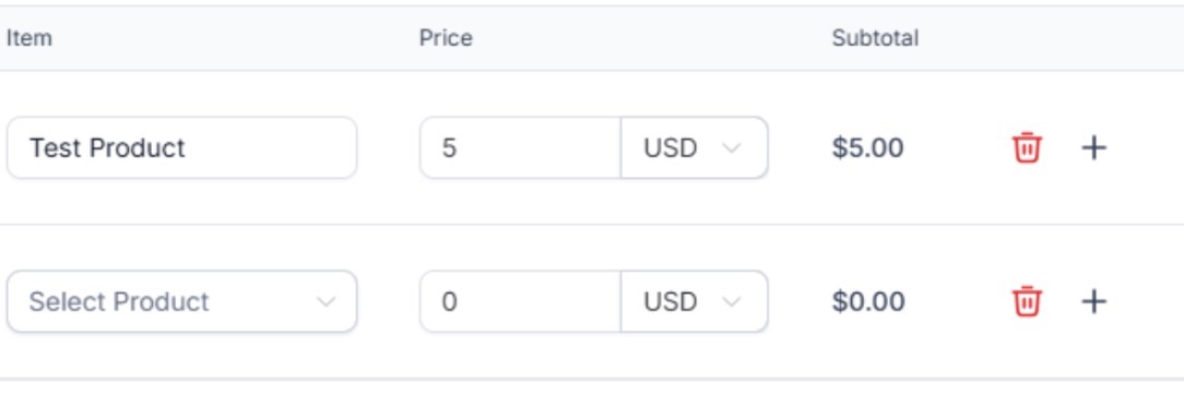 Click on Select product and choose an available product from the dropdown to add it, or click the trash icon to delete any you wish to remove.