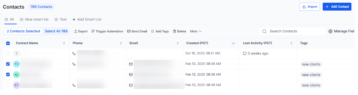 - Go to Contacts and choose the smart list for which you want to send a bulk WhatsApp message.