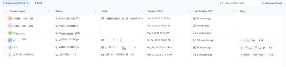 Easily identify and manage WhatsApp-enabled contacts using the dedicated column and filter in your contact list. This makes it simple to focus your communication efforts on contacts who are reachable via WhatsApp.