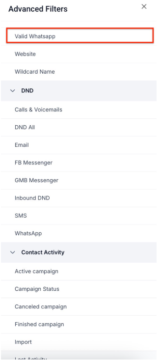 The Valid WhatsApp field and filtering options are available within your Contacts section. Utilize these features to streamline your communication and manage your WhatsApp-enabled contacts more effectively.