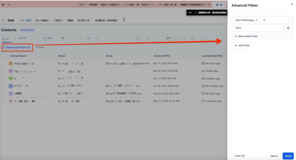- Segment Your Contacts: Use the filter to create segments of WhatsApp-enabled contacts for targeted campaigns.