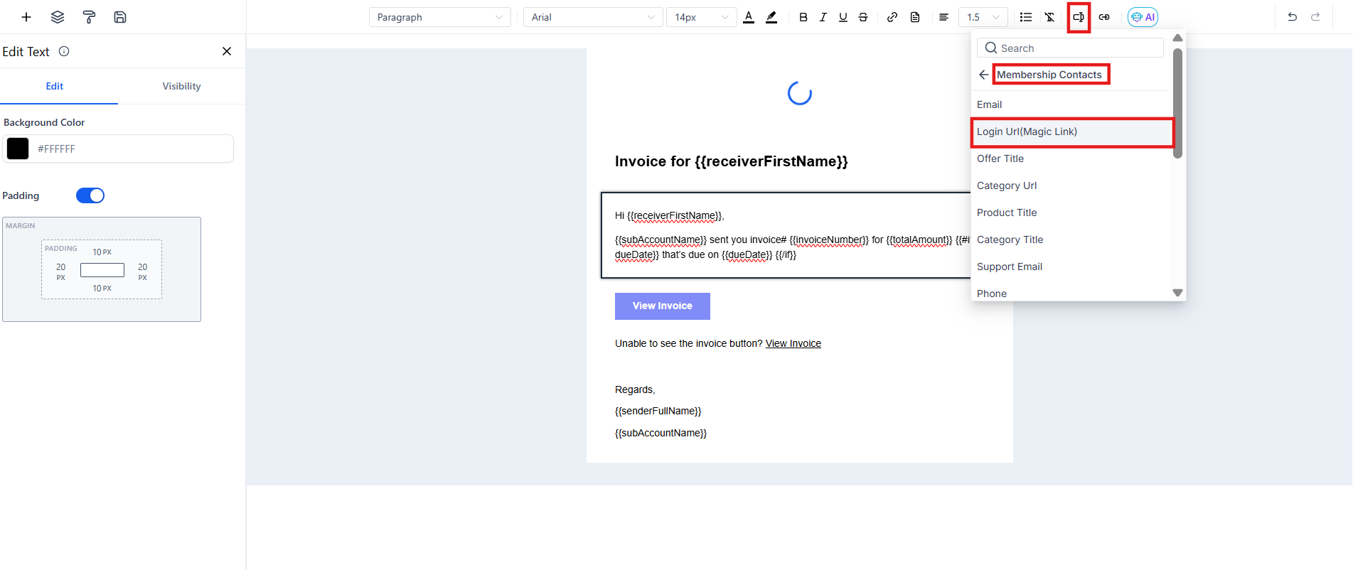 - Use Magic Links in Automation: If using automation, like email campaigns or workflows, use the custom values available to auto-generate and send magic links tailored to each user. Simply navigate to automations>workflows>create/edit a workflow.