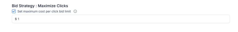 - An optional toggle to set a max cost-per-click (CPC) limit to control spend.