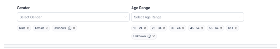 5. Users can target audiences based on gender (Male, Female, Unknown) and age ranges (18-24 to 65+ and Unknown) for more precise audience segmentation.