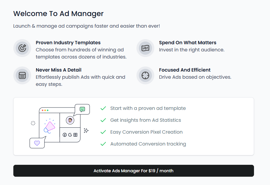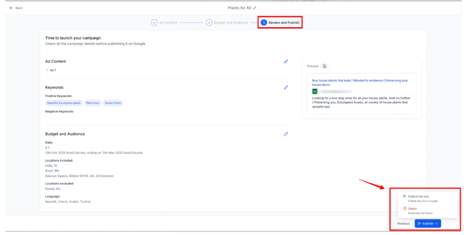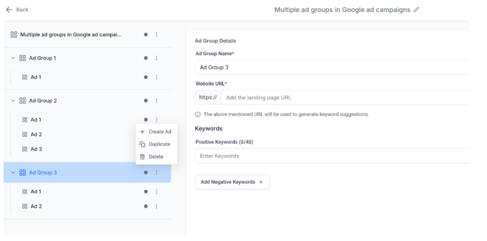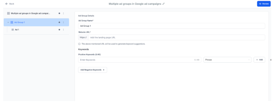- Advanced Targeting: Use positive and negative keywords to enhance ad reach and precision.