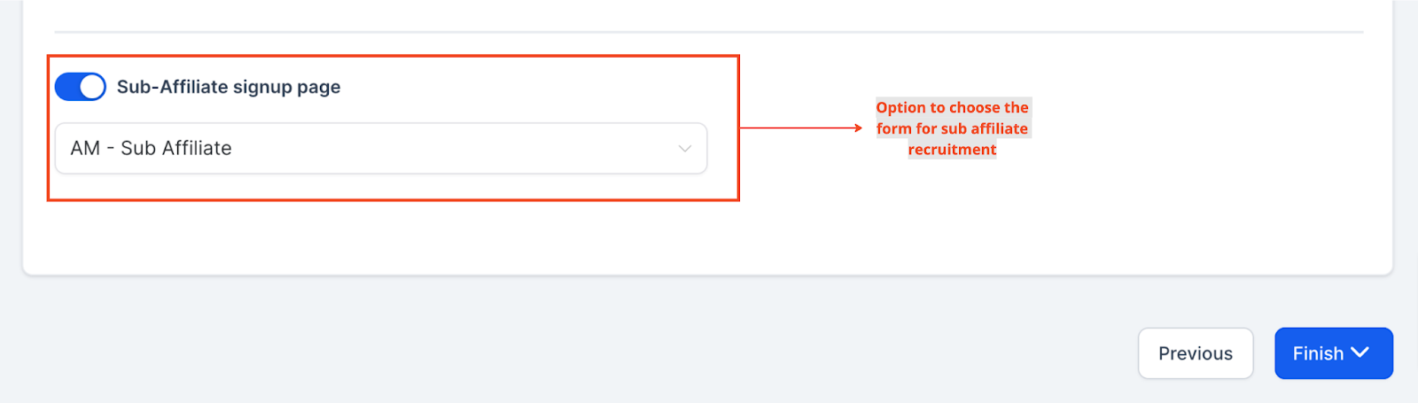 - Choose the appropriate form for sub-affiliate sign-ups from the dropdown menu.