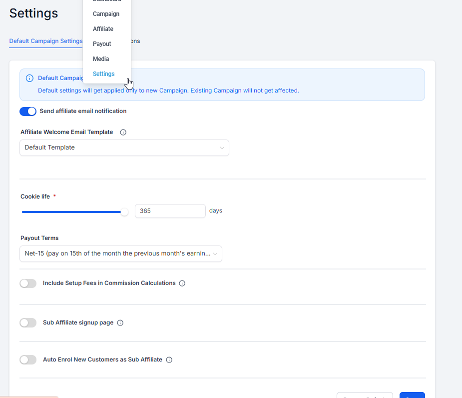 Please Note: These changes will only apply to new campaigns created after the settings are updated. Existing or older campaigns will not be affected by these changes.
