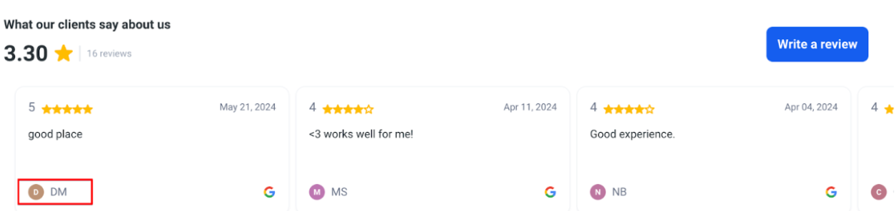 Important note: We have enhanced the privacy of review widgets for HIPAA-compliant locations by displaying reviewer initials instead of full names, ensuring sensitive information remains confidential. Please ensure your location is HIPAA-compliant.