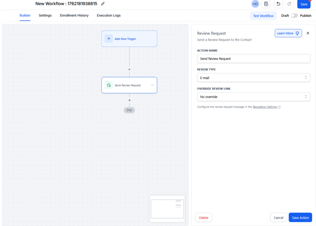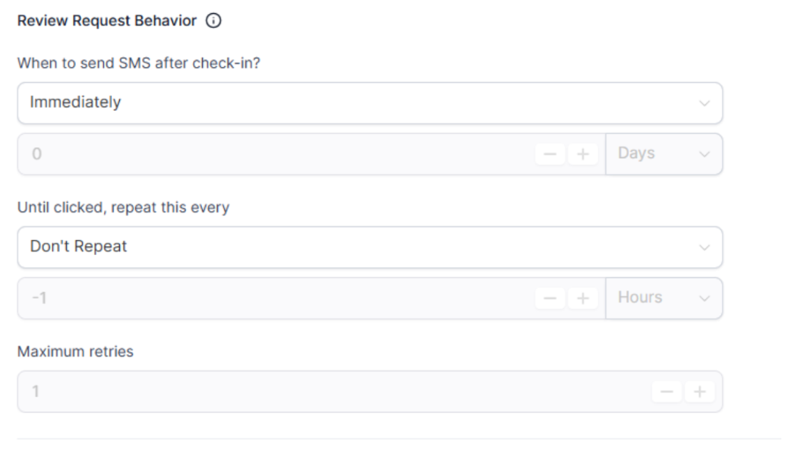 Note: You can customize review request journeys by overriding default review links in SMS, Email, or other channels, with the ability to create platform-specific variations (e.g., for Google or Facebook).