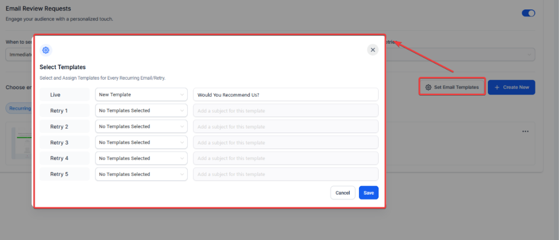 Additionally, you can also personalize your recurring emails in Reputation Management by selecting custom templates for review request emails. You can choose from a library of professionally designed templates, which can be customized to match your brand's voice.