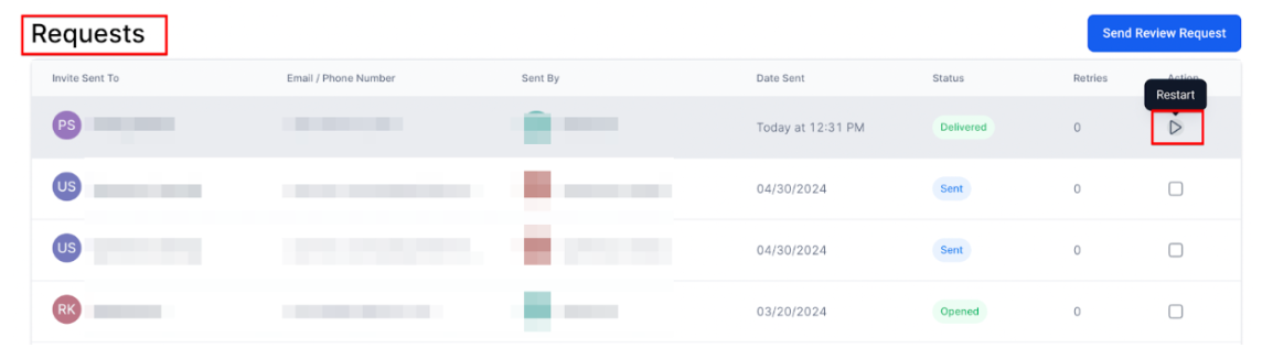 The Pause or stop recurring emails and SMS for individual contacts feature allows you to pause and resume SMS and email review requests for individual contacts within recurring email and SMS campaigns.