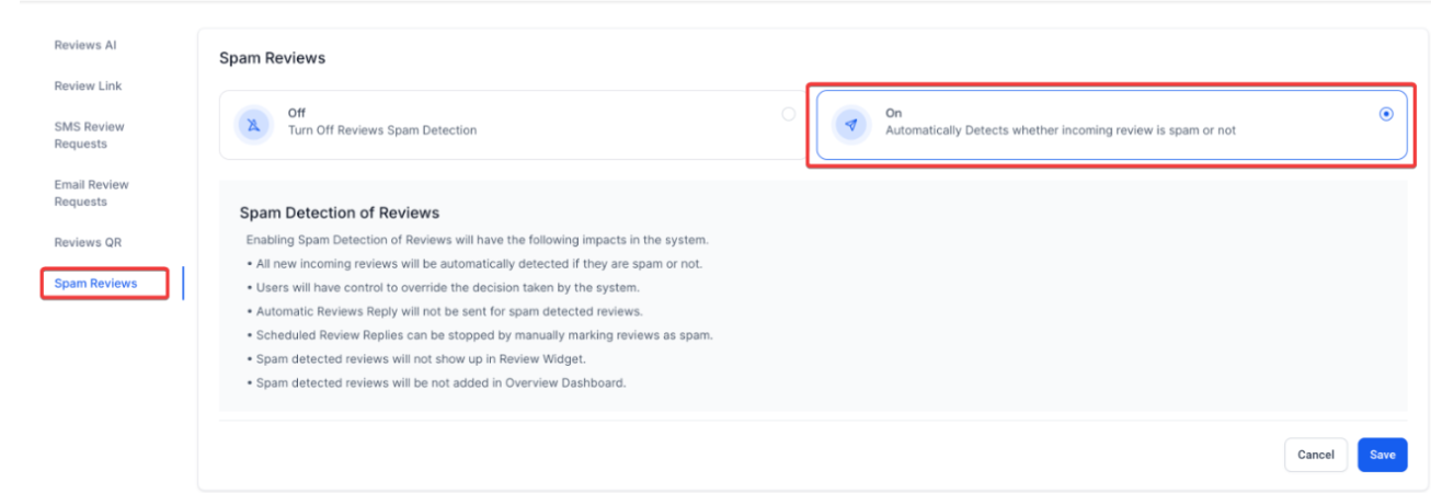 Answer: Smart Spam Detection automatically flags potential spam reviews to maintain a clean and authentic online presence. You can review flagged content and mark it as "Not Spam" if necessary.