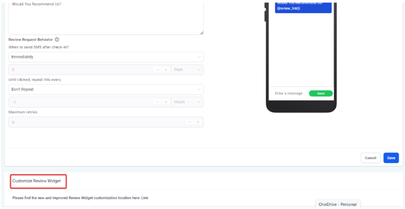- If you have Google My Business (GMB) or Facebook integrated, you will see the review link added automatically.