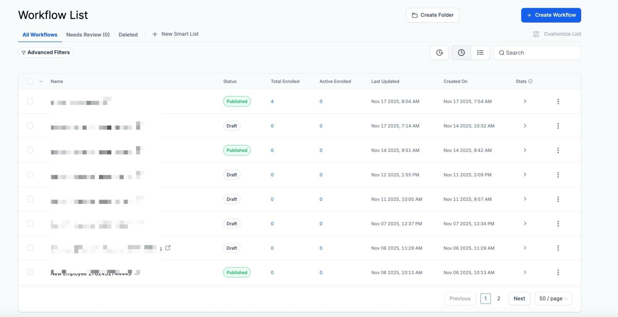- Navigate to Tools & Reporting > Automations > Workflows and access the Workflow.