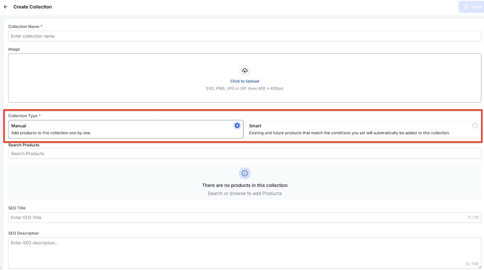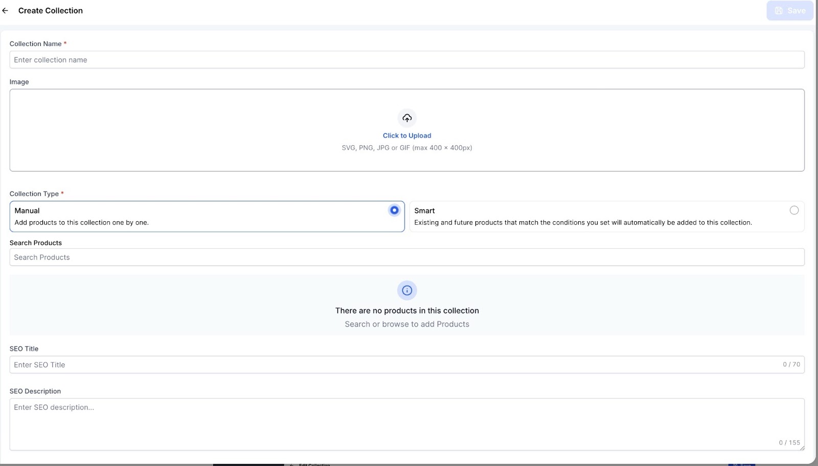 - Manual Collection: Simply search, browse, and select products to add to the collection.