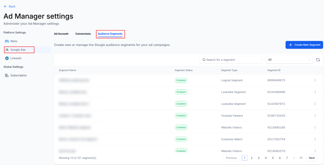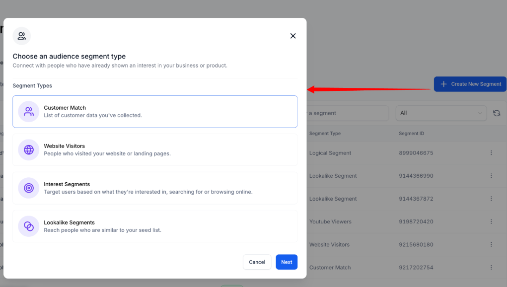 The Audience Segments feature in the Mastermind Ad Manager enables users to create, manage, and target audiences for Google Ads directly within one unified interface. Designed to simplify campaign management, this feature allows for end-to-end audience control from creation to activation ensuring higher relevance, personalization, and improved campaign performance.