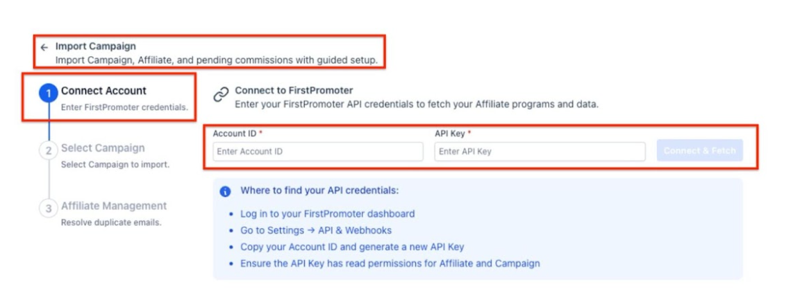 Import from First Promoter with your Campaigns, Affiliates, Leads and Commission