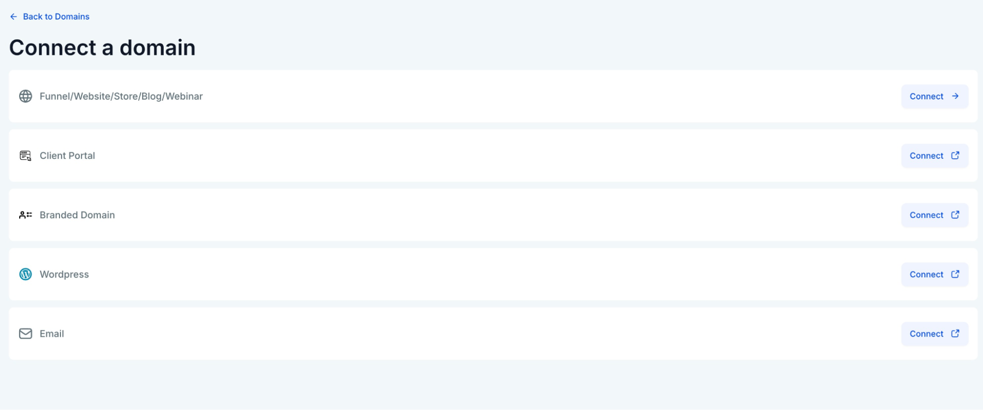 - Check Connected Products: Click on a domain to see exactly which websites or funnels are currently using it.