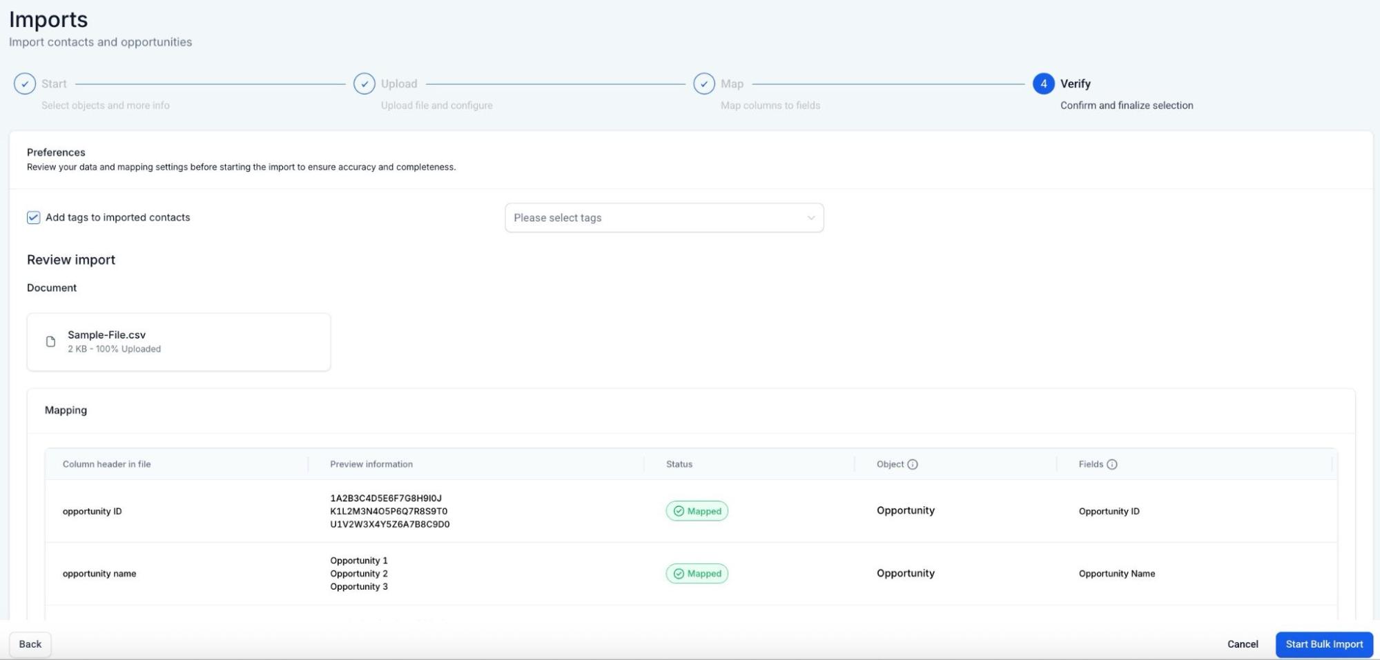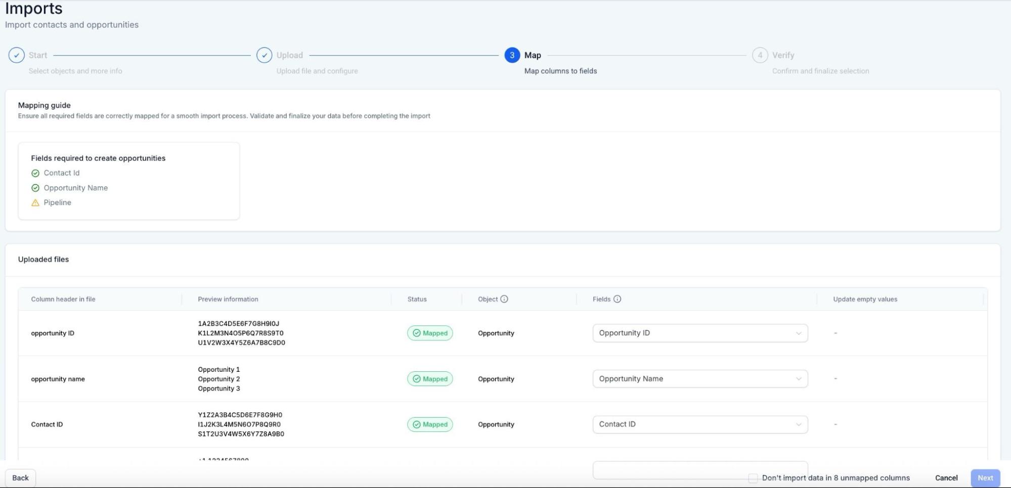 - Use the opportunity to add tags to related contacts during the import process, which can help in segmenting and organizing your opportunities better.