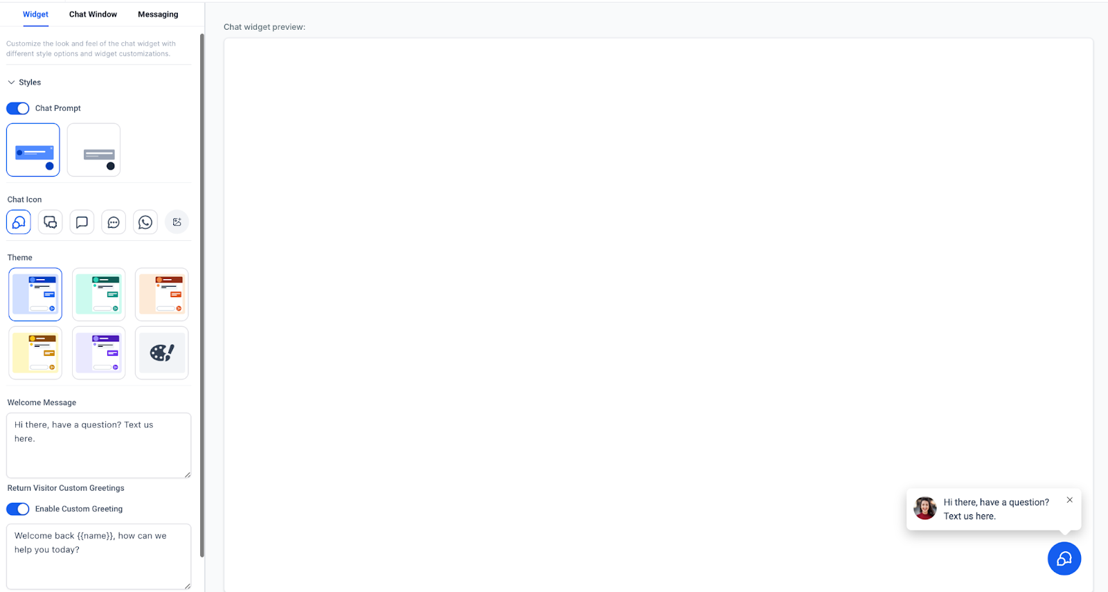 - In the Widget Window settings, you can change widget colors, font styles, and branding. These options ensure the widget reflects your brand identity.
