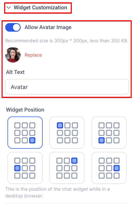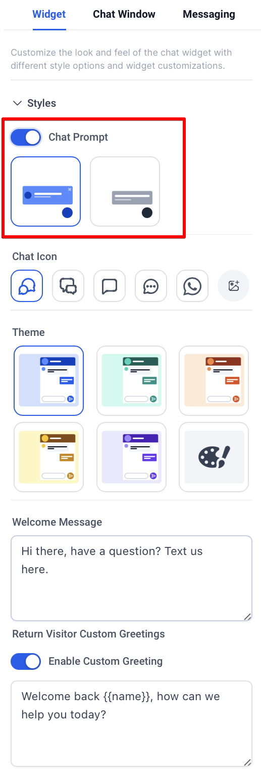 - Use the Enable Chat Bubble option to display a chat bubble icon on your site. If disabled, only the circular chat icon will remain.