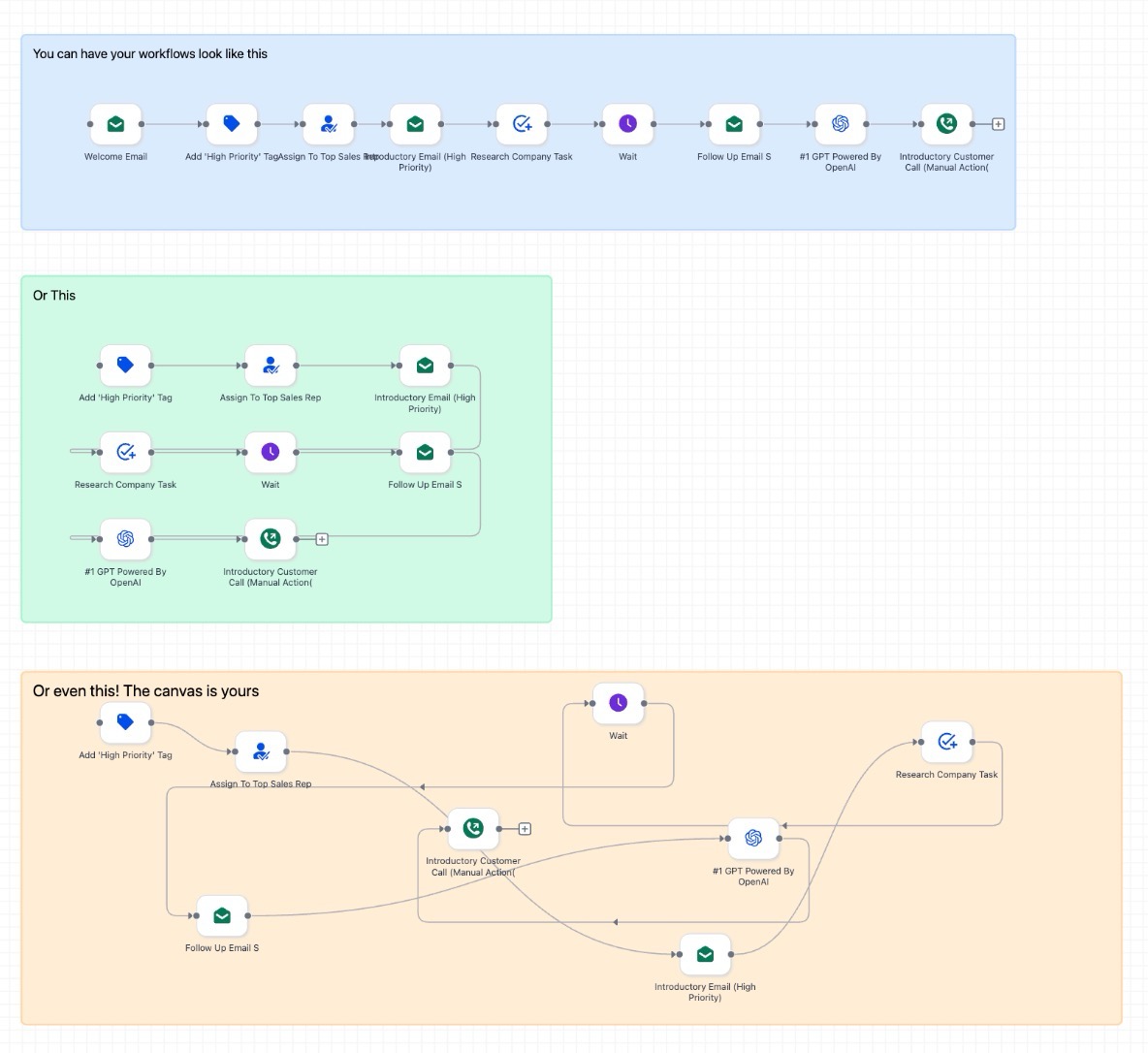 Say goodbye to scrolling through long lists of actions and conditions. The Advanced Builder features an open canvas where you can drag, drop, and arrange triggers and actions freely. This visual approach offers a clearer view of your workflow, making it easier to create, troubleshoot, and modify complex automations.